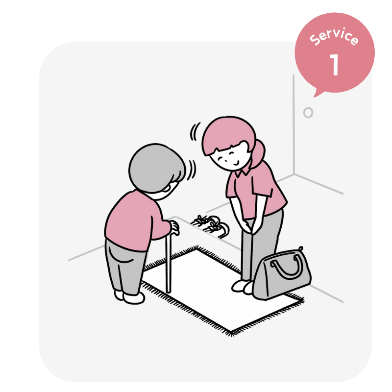 ※直接利用者様本の援助に該当しないサービスや日常生活の範囲を超えるサービス、趣味・嗜好に関するサービス、商品の販売等生業の援助的なサービス、利用者様の不在中に行うサービスは行えません。